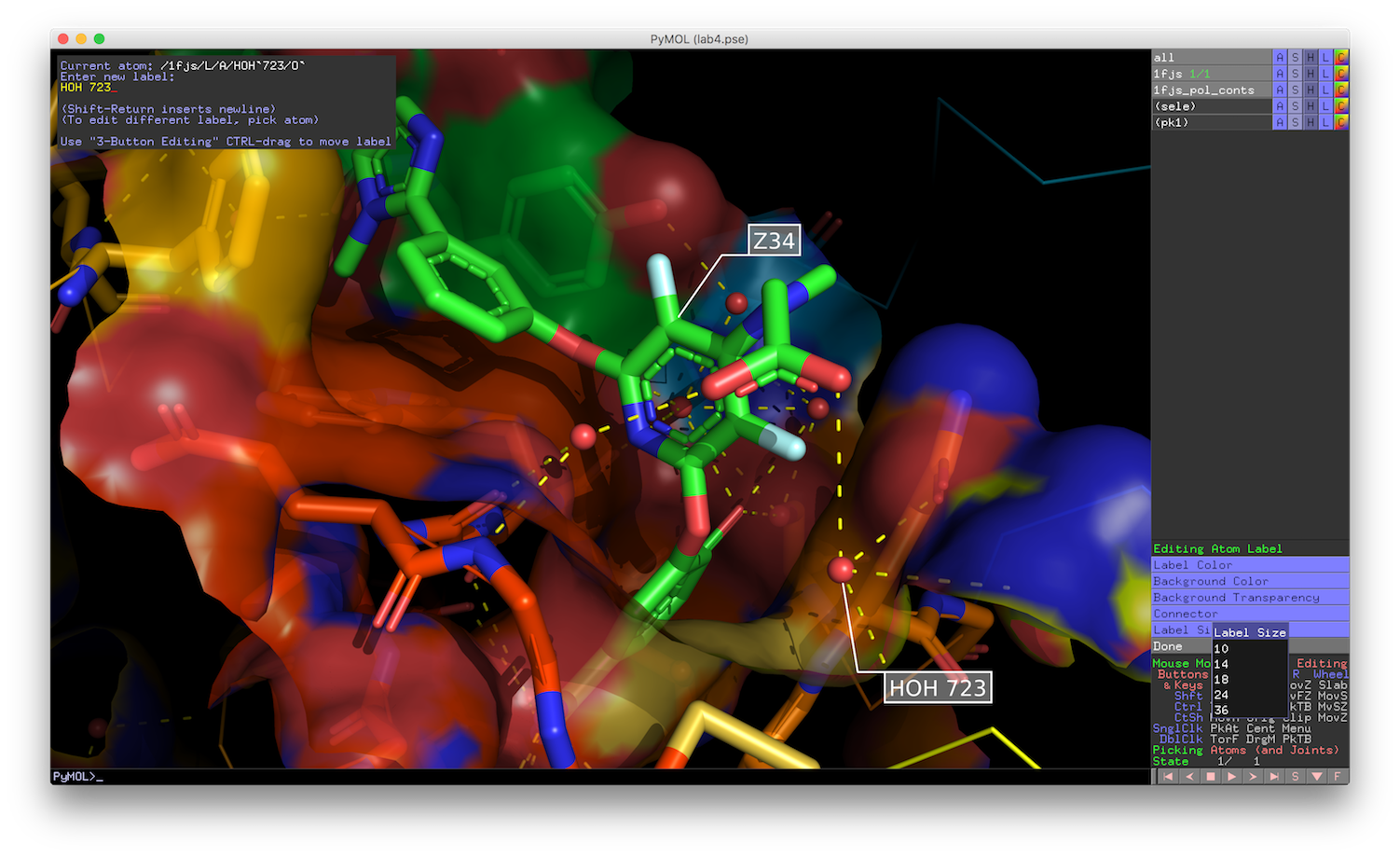 Named selections will continue working after you have made changes to a molecular structure:.. Named selections will continue working after you have made changes to a molecular structure:. Colours used are either the 22 named colours used by pymol (in which case the 23rd object, if it exists, gets the same colour as the first), …