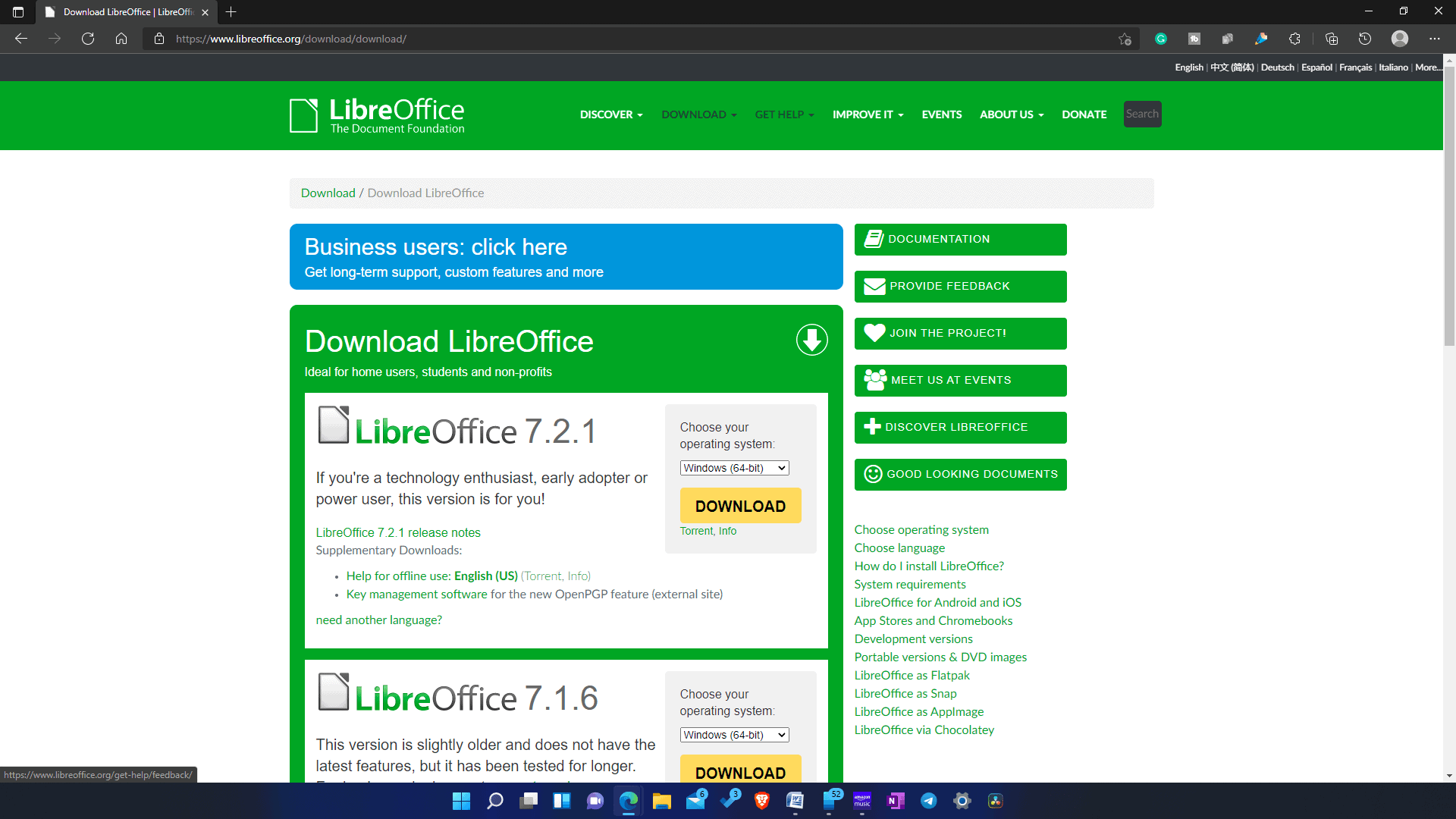 Pokud jste technologičtí nadšenci, rádi zkoušíte nové věci nebo jste zkušení uživatelé, tato verze je pro vás!. Libreoffice 7.1.6 je k dispozici pro následující operační systémy/architektury: